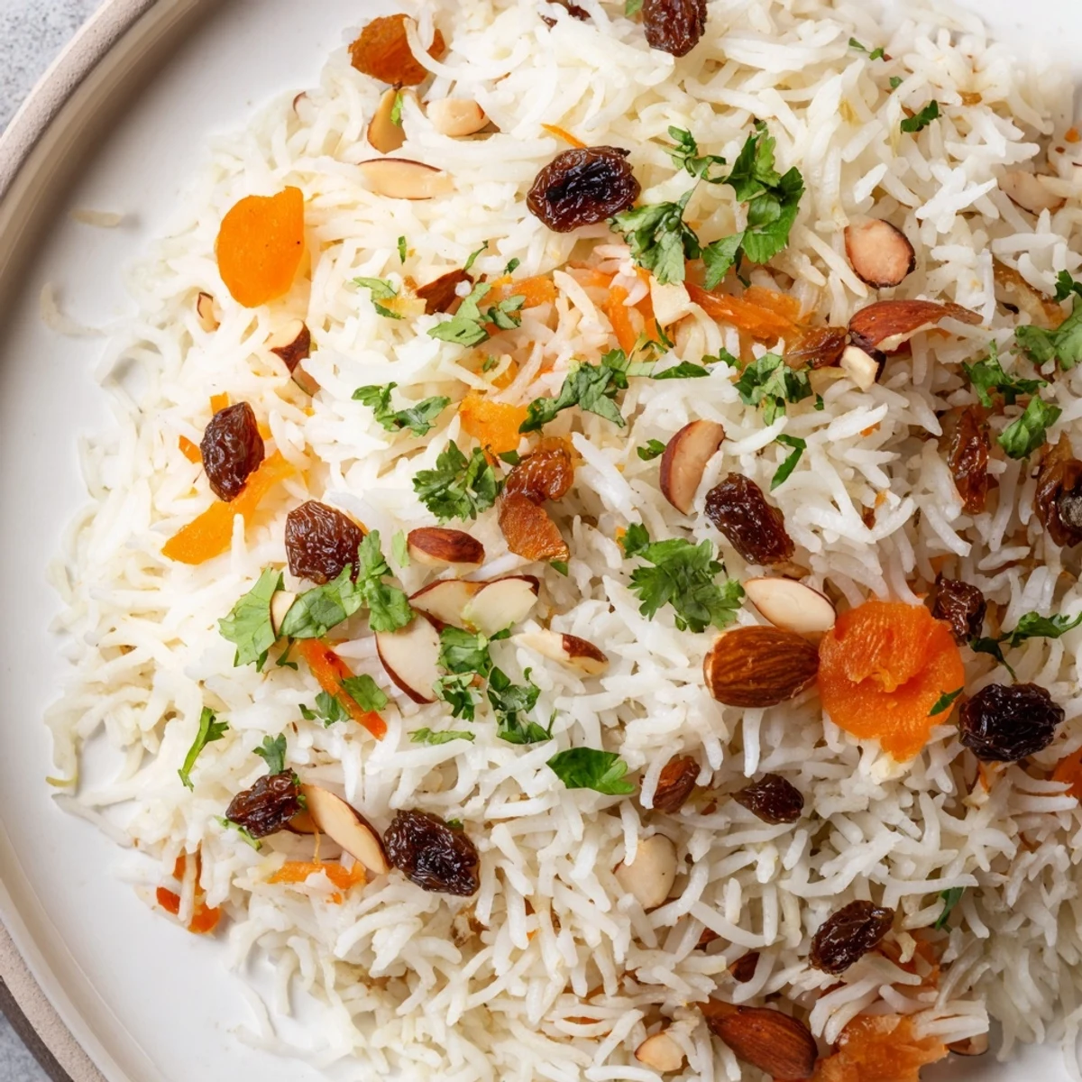 While this rice shines alongside roasted lamb or chicken, it also holds its own as a vegetarian main. I have served it with simple yogurt and cucumber salad on busy nights. The sweet and savory balance means you do not need much else to feel satisfied.