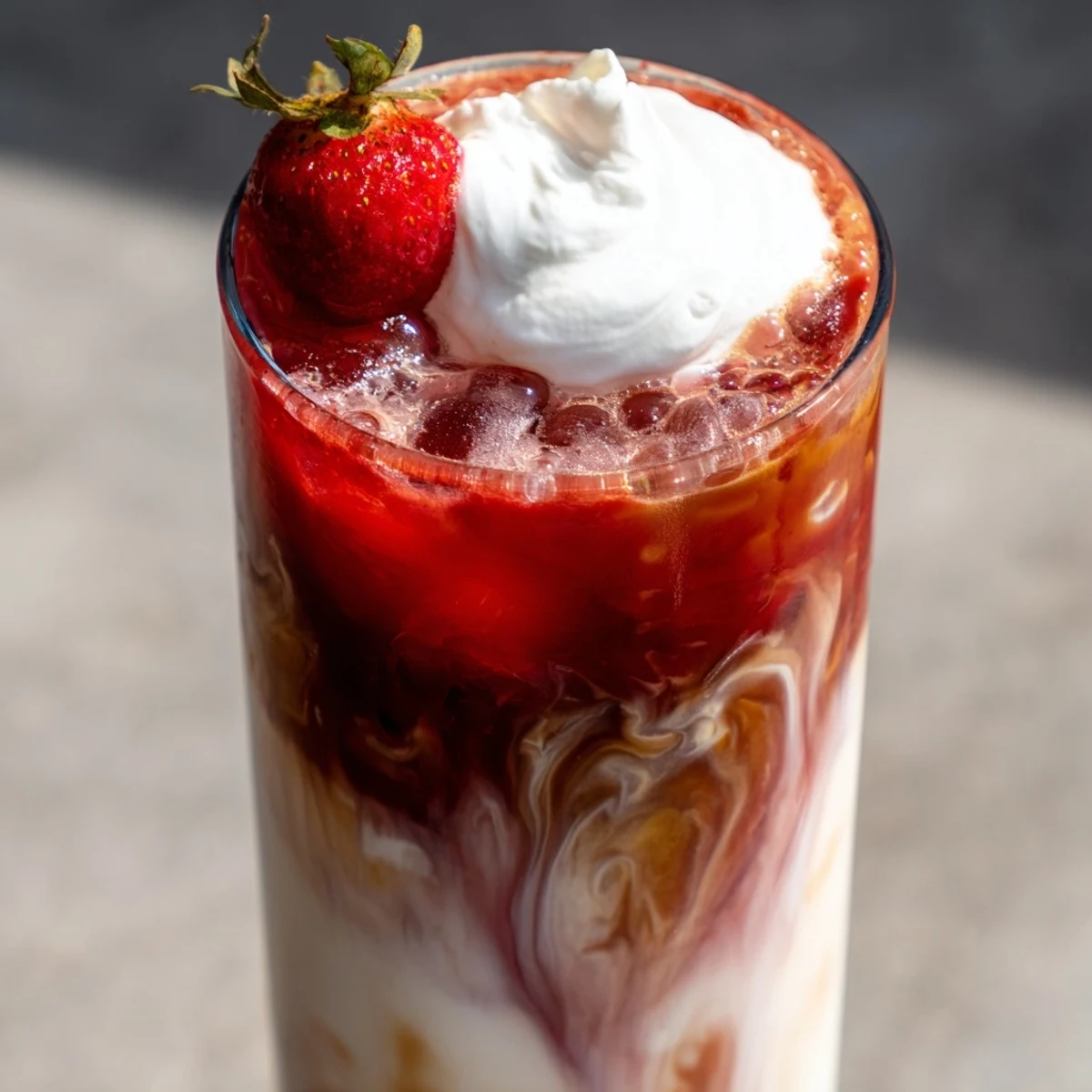 This refreshing beverage combines fresh strawberries with creamy milk and bold cold brew coffee for the perfect summer treat. The homemade strawberry puree adds natural sweetness and vibrant color, while heavy cream creates a luxuriously smooth texture. Ready in just 10 minutes, this chilled latte offers a beautiful marbled presentation when layered properly.